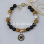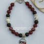 Natural red Agate stones, genuine Black Obsidian and yellow Mookaite with rhinestones in silver metal accents and handmade charm with logo on a wire with ring clasp for strength. Added 2 cm extender for variable length. Women's medium is 20cm, 8 inches in total length including extender.
